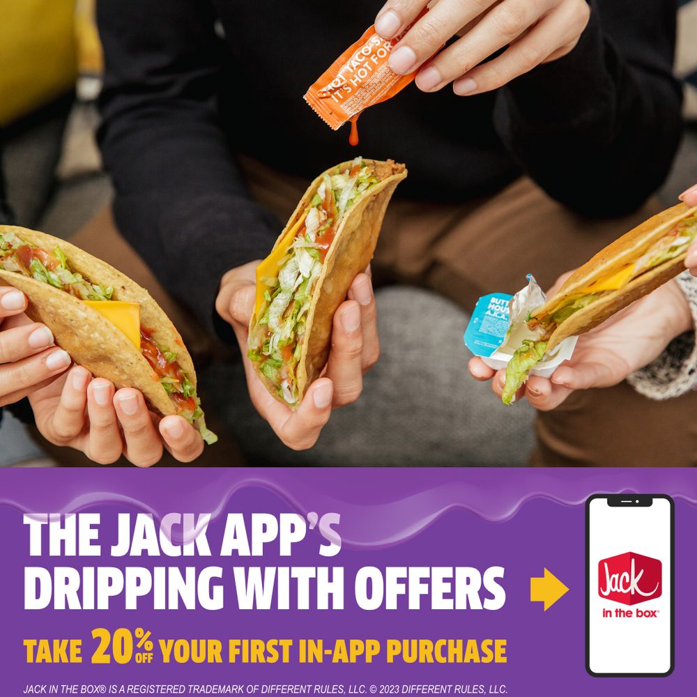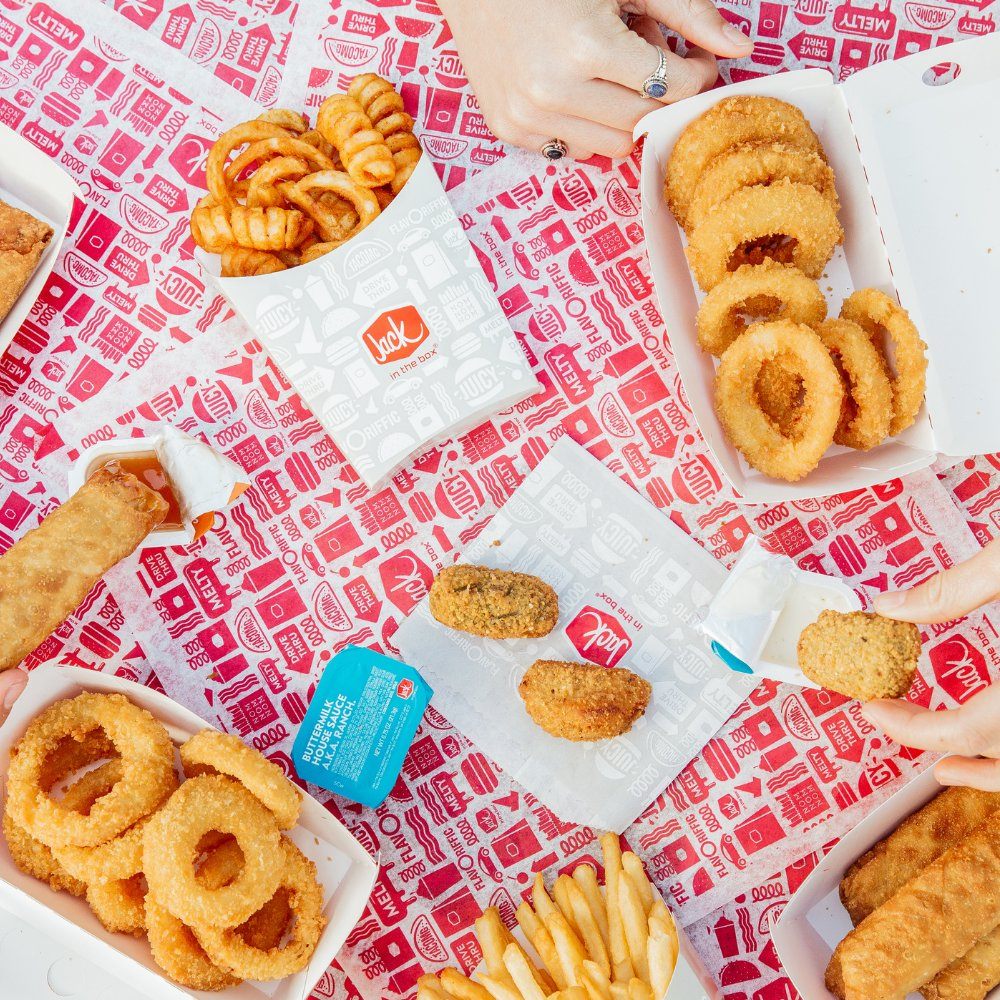 This box is packed with of Jack's fan faves like Curly Fries, 32 Chicken Nuggets, 39 Classic Tiny Tacos, and of course your favorite dipping sauces.