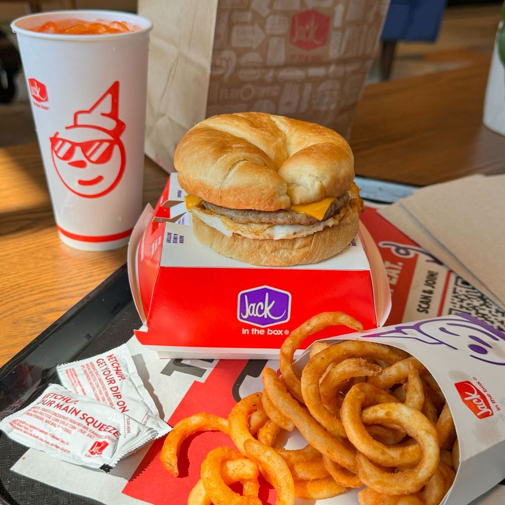 At Jack in the Box you can get scrambled eggs, a hash brown, sausage, plus three French Toast Sticks, and syrup, all day, every day.